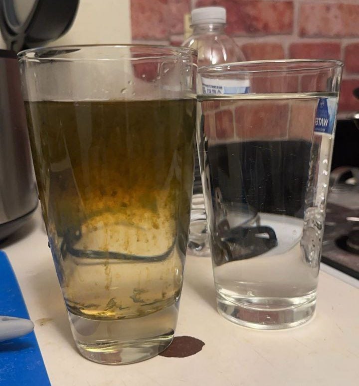 It looks like there's some swamp sludge coming out of my tap here in DFW, Tx, and it's flowing all day, every day.